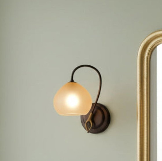 Brighten up your space with these rare chic Mid Century Marchetti wall lamps! Perfect for adding a touch of elegance to any room, these lamps feature a sleek metal base with a warm, golden hue and a beautifully crafted glass shade. Whether you're looking to illuminate a cozy reading nook or add some flair to your hallway, these lamps are just the ticket. Marchetti an Italian firm now producing high end bespoke lighting .The apricot coloured frosted glass shades gives a lovely soft glow . The design has an Art Nouveau vibe but it simple quirky style lends itself to other eclectic interiors. They feature unscrewable lampshades ( see last photo) LED lightbulbs (included) and a CE mark for security. Both are working in a very good condition.