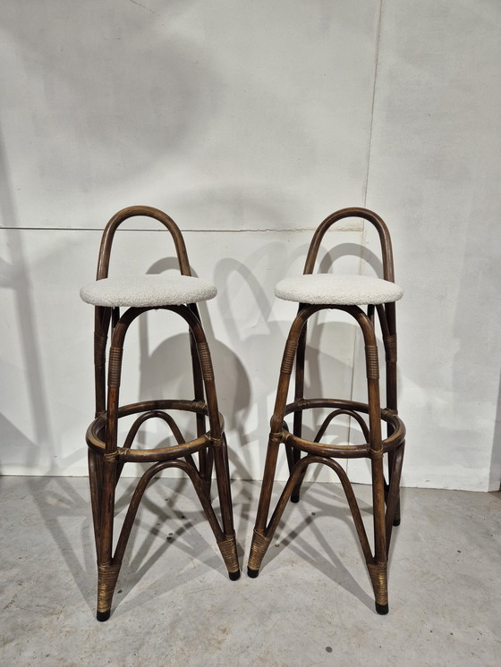 ConditionGoodColorsBrown, CremeMaterialBambooNumber of items2Height110 cmWidth40 cmDepth45 cmSeat height89 cmSigns of usageDiscoloring