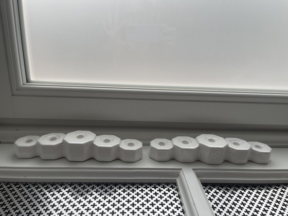 - Crafted from high-quality ceramic, these candle holders boast a sleek white finish that complements any decor.