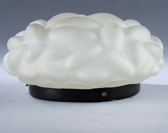 This is a set of two Helena Tynell sconces or ceiling lights, featuring a distinctive textured glass design. The lights are crafted from high-quality glass and metal, embodying a Mid Century Modern style. Perfect for adding a touch of vintage elegance to any room, these lights can be used as either wall sconces or ceiling fixtures.