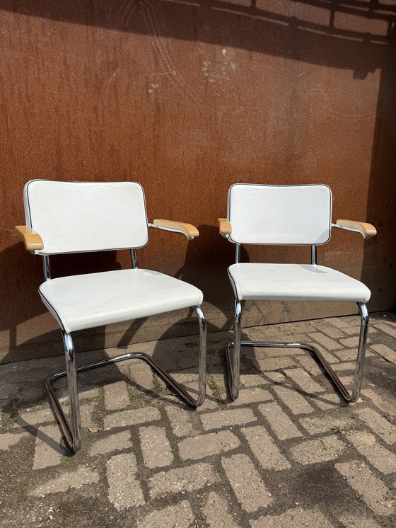 ConditionGoodColorsWhiteMaterialChrome, LeatherNumber of items2BrandThonetHeight80 cmWidth58 cmDepth62 cmSeat height45 cmSigns of usageScratches, Wrinkles