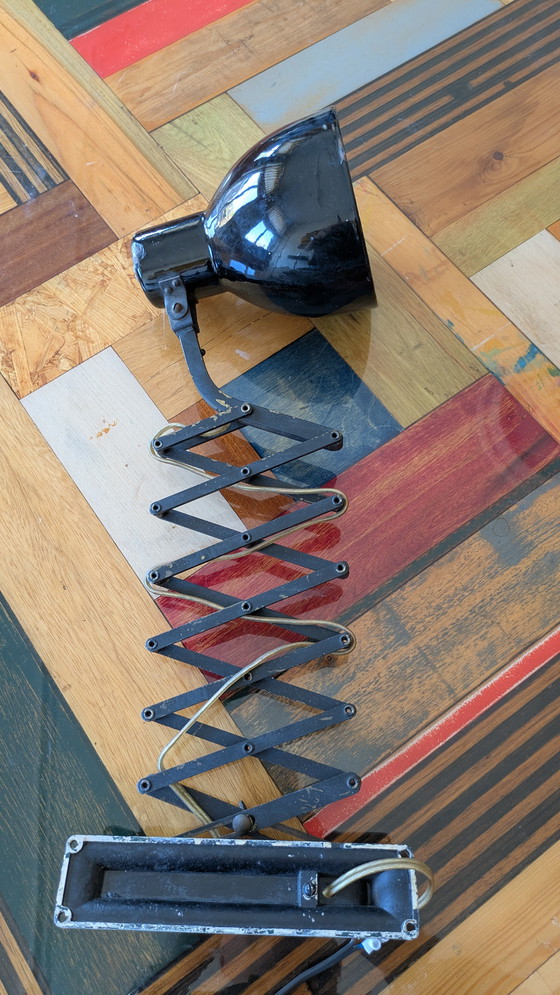 Beautiful old ('20s/'30s) Bauhaus scissor lamp. The lamp is in nice vintage condition, has some (age-appropriate) signs of use, but has a nice patina and is truly a gem.