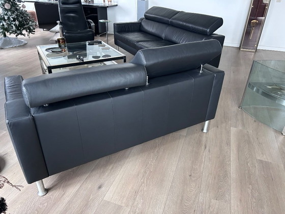 Discover the ultimate comfort and modern elegance of this Montel sofa. With its clean lines and high-quality finish, this piece is a perfect addition to any contemporary interior. Upholstered in luxurious black leather, the sofa not only offers a stylish look but also guarantees durability and easy maintenance. The sturdy metal legs add a touch of industrial charm, while the adjustable headrests provide extra comfort and support. This Montel sofa is ideal for both relaxing evenings and stylish receptions. Contact us today for more information or to schedule a viewing.