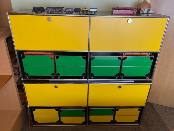 This set of two filing cabinets offers a colorful and functional solution for your storage needs. Featuring a striking combination of yellow and green panels, these cabinets add a playful and modern look to any office or workspace. The metal construction ensures durability and stability, while the spacious drawers provide ample room for all your documents and office supplies.
