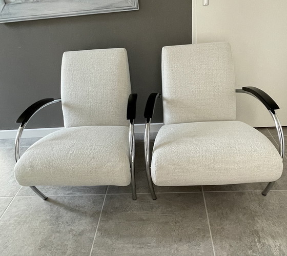ConditionExcellentColorsWhite, CremeMaterialWood, Textile, ChromeNumber of items2BrandGelderlandHeight75 cmWidth67 cmDepth87 cmSeat height39 cm