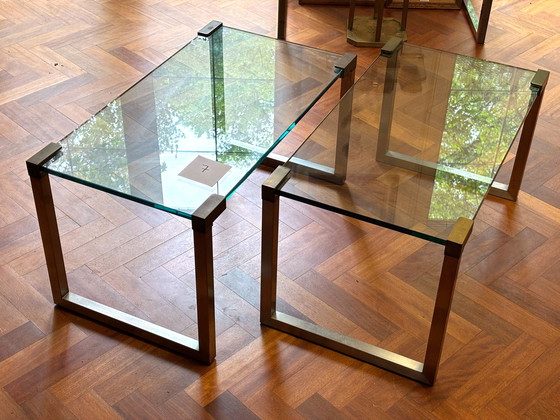 ConditionGoodColorsTransparentMaterialStainless steel, Bronze, GlassNumber of items2BrandGhyczyHeight42 cmWidth82 cmDepth44 cm