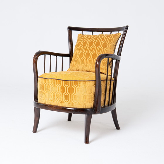 Made in Hungary of cherry wood in the 1920s. Design follows the style of Gyula Kaesz, but the designer and manufacturer are unknown.