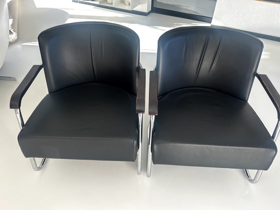 ConditionVery goodColorsBlackMaterialWood, Chrome, LeatherNumber of items1BrandGispenFirst ownerYesHeight70 cmWidth66 cmDepth76 cmSeat height40 cmSigns of usageDents