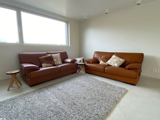 Discover the refinement and comfort of this set of two 2.5-seater leather sofas from Rivet-Lozano. These sofas are the epitome of elegance and fit perfectly into any living room. The high-quality leather and clean lines create a luxurious, timeless look. The generous seating and soft cushions offer unparalleled comfort, ideal for relaxing evenings at home. Add a touch of elegance to your interior with these beautiful leather sofas. Contact us today for more information or to schedule a viewing.