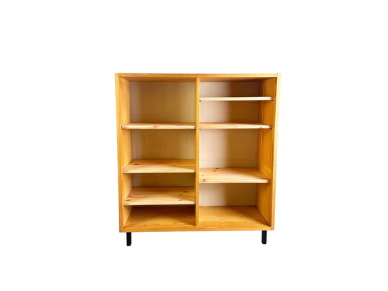 We are offering for sale two beautiful vintage (book) shelves/ sideboards by Karin Mobring for IKEA from the 1970s. The design is characterized by its simplicity, function and the clear, Scandinavian lines of the 1970s. A total of 2 of these shelves and in our other ads also 2 identical carcasses with doors are for sale.