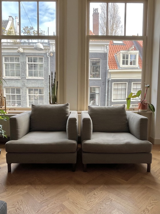 Introducing a pair of Verzelloni Hampton Memory lounge chairs, a perfect blend of Italian craftsmanship and modern design. These chairs offer a sophisticated touch to any living space, with their sleek lines and very comfortable plush seating.