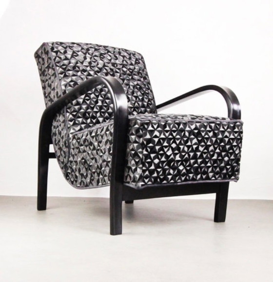 Beautiful and high value armchairs by the world-renowned designers Karel Koželka and Antonín Kropáček, who were awarded a silver medal at the Milan Triennale in 1946, together with the legendary circular table made of lacquered wood, which can also be purchased in the same shade of lacquer with these armchairs. The whole set will be a beautiful and representative piece of furniture for your home or office.