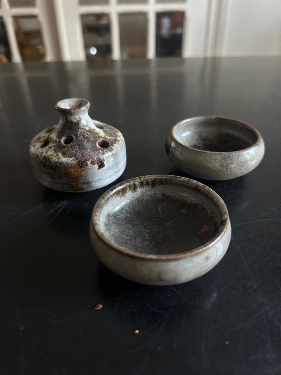 Set of 3 small ceramic pieces signed by Thierry and Chantal Robert