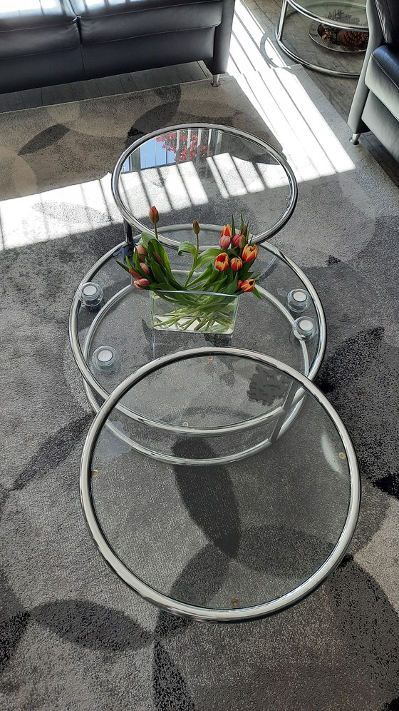 Discover the sophistication of the 3-piece coffee table set by Milo Baughman, a masterpiece of modern design that combines elegance and functionality. With its clean lines and refined finish, this set is a perfect addition to any contemporary living room.