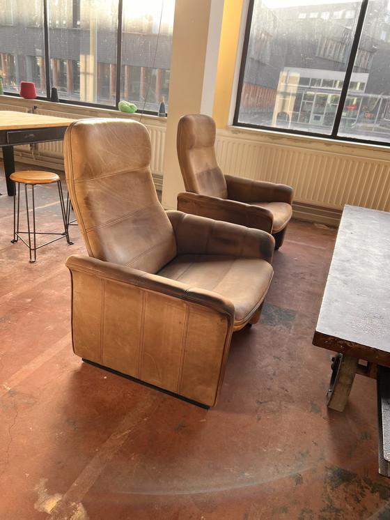 ConditionGoodColorsBrownMaterialLeatherNumber of items4Brandde SedeHeight110 cmWidth70 cmDepth100 cmSeat height45 cmSigns of usageDiscoloring, Scratches, Stains