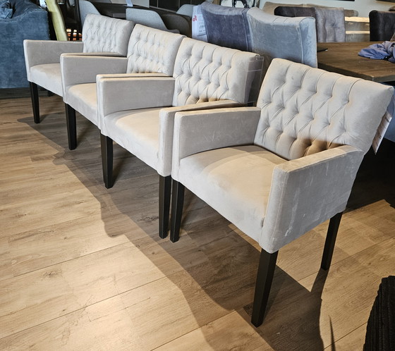 Experience the elegance and comfort of this set of four dining chairs, perfect for a sophisticated dining room. These chairs combine modern style with a timeless look, making them a beautiful addition to any interior.