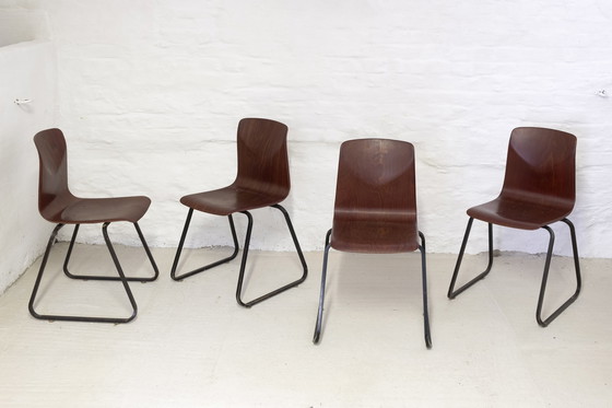 A set of 4 industrial Pagholz Galvanitas stacking chairs model S23 by Elmar Flötotto, produced in the 1970s.