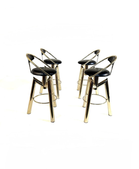 Set of 4 Italian bar stools in Hollywood Regency style, 1980s.