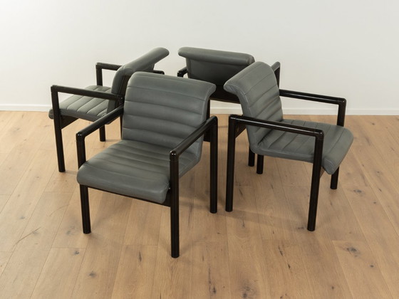 Postmodern dining chairs by Flötotto from the 1980s. Solid frame in black. The seats and backrests with original leather cover in grey. The offer includes four chairs. Made in Germany, Manufacturer: Flötotto. Good condition with slight signs of use.