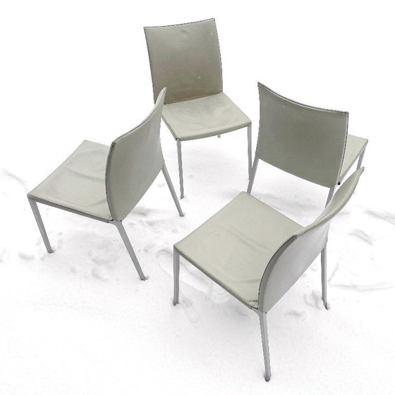 Zanotta LIA eetkamerstoelen design Roberto Barbieri, 1998 aluminum alloy frame, polished removable cover in leather, color ivory