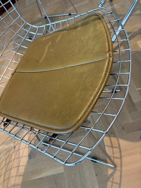 5x vintage Seat Pad for Harry Bertoia Side Chair. >40y old. The leather has some cracks and is damaged in some places, need to be renovated. Comes from a house with smokers, the leathers is smelling smoke.