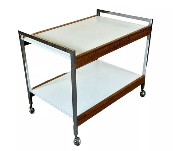 60s 70s serving trolley dinette in teak & chrome Danish Modern Design