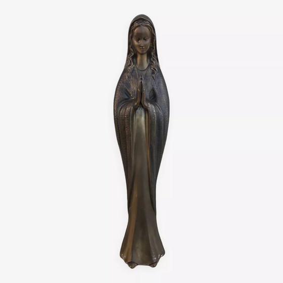 Virgin Mary statue in bronze and solid brass, signed Biondan VR. Height 65 cm, width 14 cm, depth 12 cm. Weight 5.4 kg.