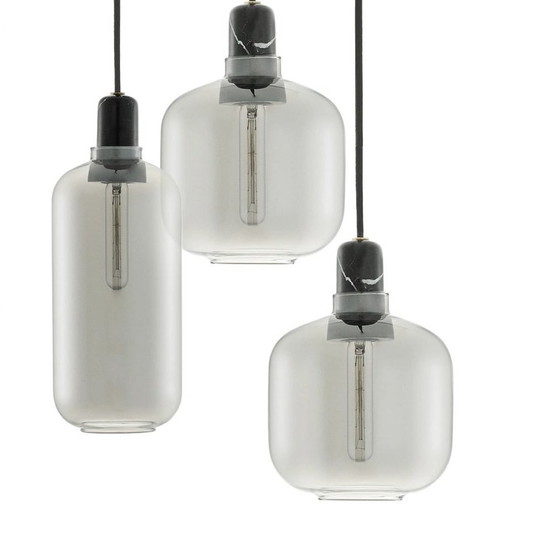 Brighten up your space with this stunning set of 6 Amp Lamps by Normann Copenhagen. These modern pendant lamps are perfect for adding a touch of elegance and sophistication to any room. Crafted with sleek glass and metal, they offer a chic, minimalist vibe that fits seamlessly into contemporary interiors.
