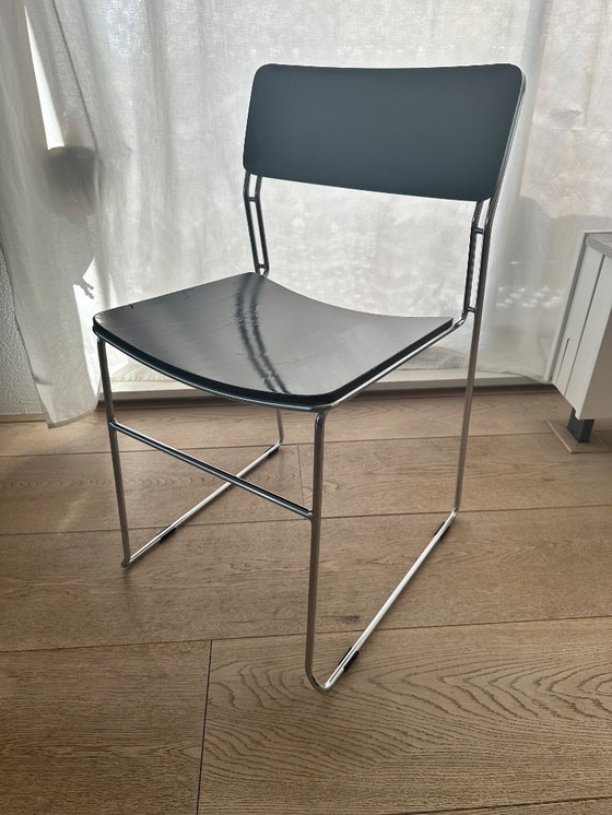 6 beautiful Arbben Italy designer dining chairs, model Sultana. Color Black. Stackable. Used so with normal signs of use.