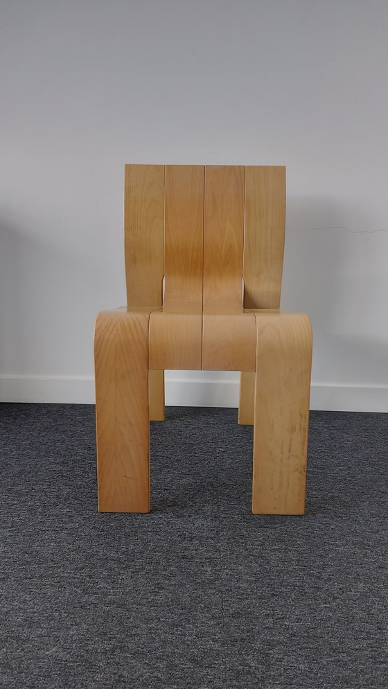 These dining chairs are truly Dutch Design. Designed by Gijs Bakker for Castelijn in 1974. The chairs are made of bent and laminated wood. The chairs sit well and are easily stackable. Except for some minor signs of use, the chairs are in good condition. This is a set of 3, but 2 or 1 is also possible.