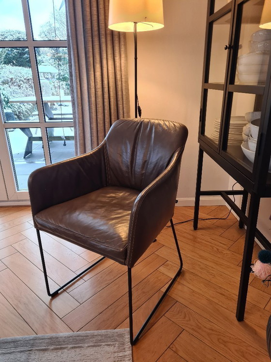 ConditionVery goodColorsBrown, BlackMaterialMetal, LeatherNumber of items8BrandKFFHeight80 cmWidth55 cmDepth80 cmSeat height48 cmSigns of usageWrinkles
