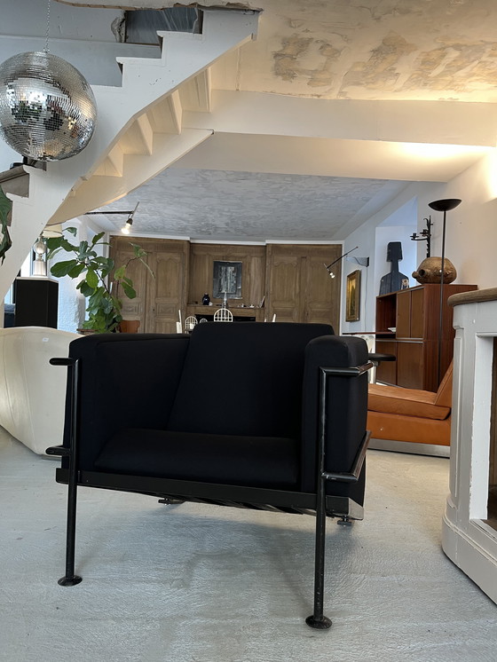 Armchair with all-metal frame. The fabric cushions have been completely refurbished.
