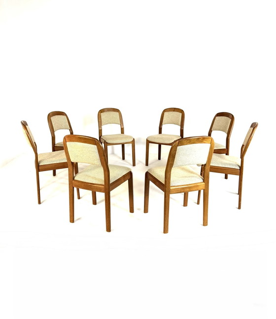 Set of 8 vintage dining chairs designed by the Danish quality brand Dyrlund, 1970s.