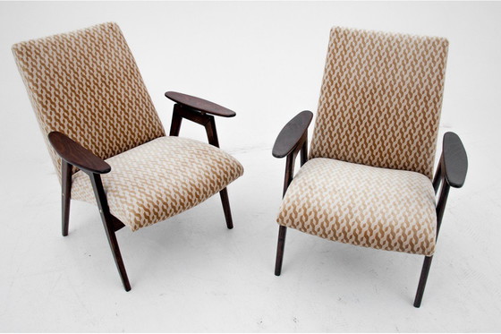 Very good condition, after professional carpentry and upholstery renovation. The wood has been cleaned and finished with a durable semi-matt varnish. The upholstery has been replaced with a new one along with the interior, upholstered with new high-quality fabric.