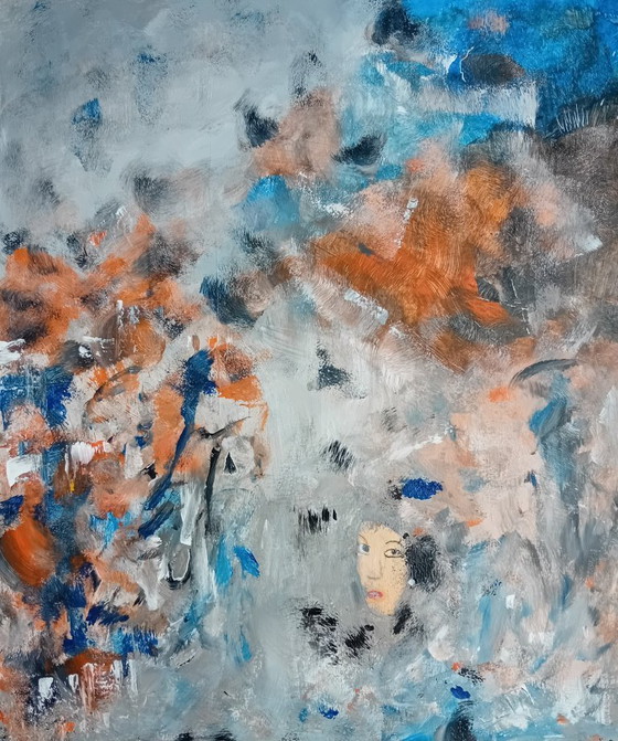Painting "the Pearl". Abstract unique painting, see the girl with the pearl in the painting. Size 55x45. Acrylic paint on canvas, ready to hang.