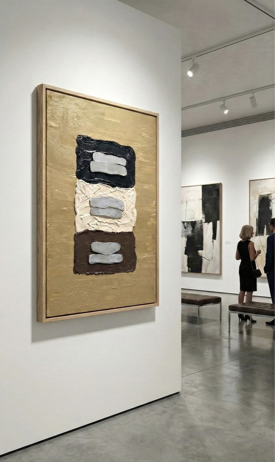 This original artwork plays on the contrast of textures and light. Created by hand using an impasto technique, it brings a touch of raw sophistication (Wabi Sabi) ideal for a contemporary or minimalist interior.