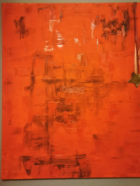 A striking acrylic painting on canvas, captivating with its intense red hue. The abstract composition lends a dynamic and emotional atmosphere to any room. Perfect for modern art lovers.