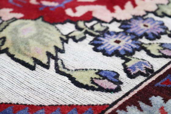 Kilim Afghan rugs are hand-woven by Turkmen in northern Afghanistan. A traditional weaving technique is used to create the typical step-like pattern, which is characterized by a small gap between the individual blocks of colour. To achieve this, the weaver returns the weft around the last warp of a particular color area and then returns the weft of the adjacent color around the adjacent warp. The void formed between the two spaces should be visible but still remain small. These rugs are remarkably durable and to ensure that the structure of the kilim remains strong, the weaver must ensure that the weft is tightly packed and completely covers the warp. The old weaving technique gives the weaver more freedom to be creative. This results in kilims in natural and vibrant colors with bold, geometric shapes. They are a perfect addition to both the modern and traditional home and due to their versatility they can adorn floors, walls, bedspreads and furniture in the same way that nomads originally used them as floor coverings, bags or curtains for tents. In addition to their versatility, kilims are reversible and have the same pattern on both sides. This means that they can easily be turned over and used if they become soiled or stained.