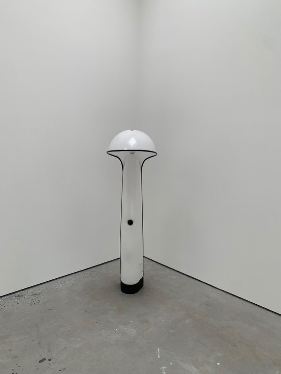 Alba floor lamp, designed by Ermanno Lampa & Sergio Brazzoli for Guzzini, Italy, 1970's. The lamp is in a beautiful condition and the build in dimmer works perfectly as it should. Plastic foot and shade with a heavy cast iron foot as a contra weight. The dimmer allows to continuously adjust the light.