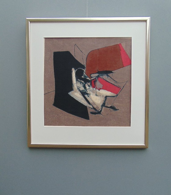 Image size: 64 x 64 cm. Framed with a mat behind glass. Total size: 91 x 95 cm.