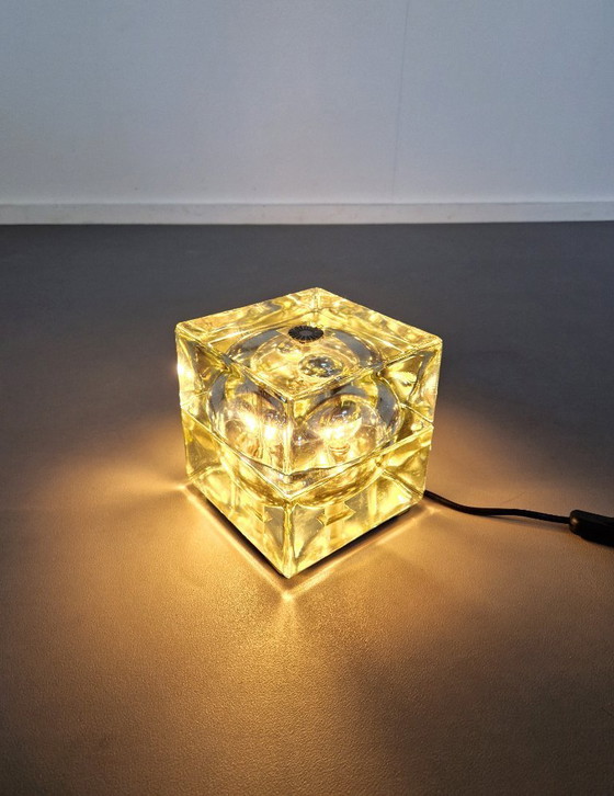 In our opinion, this is one of the most beautiful classics in vintage lighting. The 'Cubosfera' was designed by Alessandro Mendini in 1986 and produced by Fidenza Vetraria in Italy. The glass cube consists of two parts attached to each other with a single screw. Inside, there is a sphere that can accommodate two E14 bulbs. It looks fantastic and is unique from every angle due to the glass and the way the light falls.