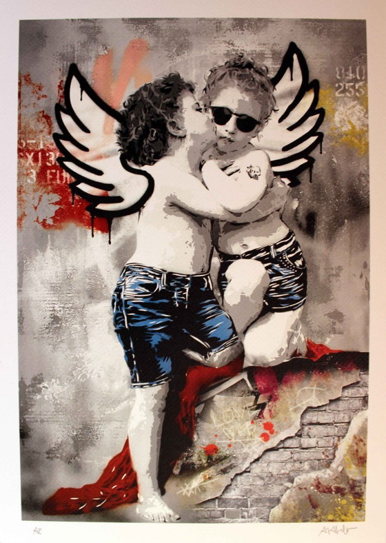 Artist's Proof (AP), a unique, unnumbered piece, directly from the studio of Alessio B, an iconic Italian street artist known for his poetic and socially conscious work. Renowned for his pieces that blend delicacy with visual power, Alessio B explores the duality between spiritual purity and urban rebellion in "Street Angels."