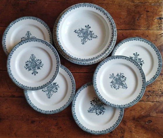 Superb Salins earthenware set, Alhambra pattern with its dark blue, almost black, arabesque decoration.