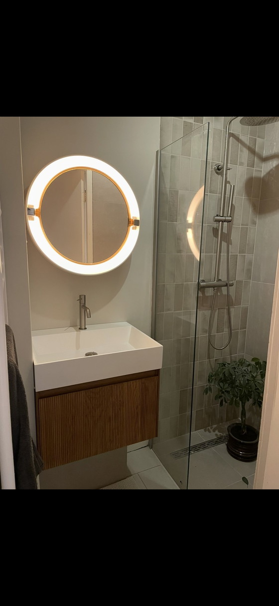 This mirror is a real eye-catcher and fits perfectly in a retro or vintage interior. Considering its age, the mirror shows minimal signs of wear. A unique piece for the enthusiast!
