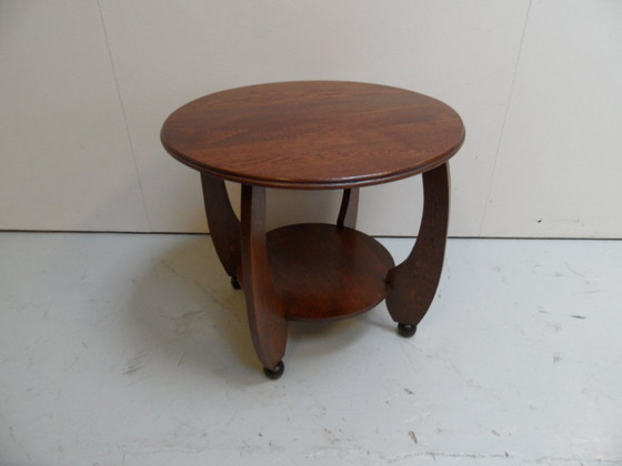 Amsterdam School round oak coffee table in very good condition. Made around 1910-1920.