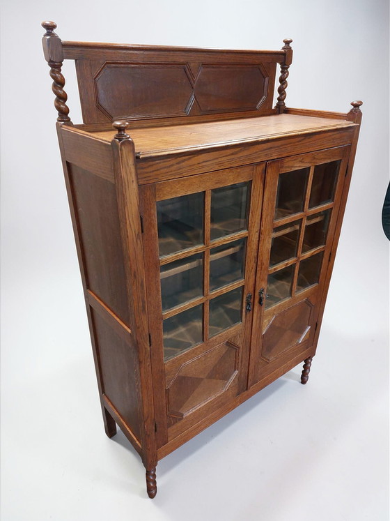Charming antique cabinet in Art Deco style, perfect as a bookcase or china cabinet. The cabinet has a beautiful warm appearance and offers ample storage space. Ideal for the lover of antiques and Art Deco.