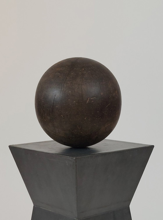 This antique decorative sphere, crafted from patinated hardwood, lends an aura of timeless elegance to any room. Its natural patina and handcrafted finish make it a unique work of art, perfect as a centerpiece or a subtle accent in your interior.