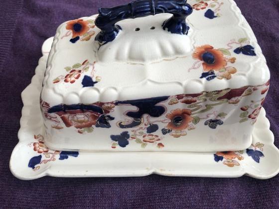 Antique English Large Cheese Keeper or Butter Dish, ceramic, circa 1920, made by Keeling & Co Lt,England Known as Losol Ware. Would be in great in a shop for display. The condition is good/ very good for it's age but there are signs of wear - the decorative gold line has worn off in places, plus there are a few age spots.