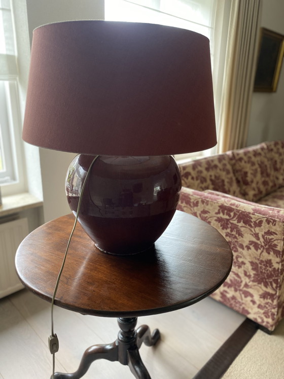 This beautiful antique lamp exudes a timeless elegance that can enhance any room. With its classic shape and rich red color, it is a striking piece that offers both style and functionality. The lamp is crafted from high-quality ceramic, contributing to its durable and robust character. The warm brown lampshade provides soft and inviting lighting, ideal for a cozy atmosphere in your living room or study. The classic design makes this lamp a versatile addition to both traditional and modern interiors. Add a touch of sophistication to your home with this unique antique lamp. Contact us today for more information.