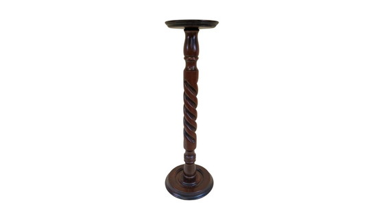 Antique mahogany Barley Twist Plant Stand. Crafted with enduring mahogany wood, the intricate barley twist design adds a touch of vintage grandeur to your green companions. Embrace the beauty of classic craftsmanship and bring a piece of the past into your plant display.